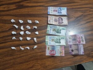 Tras una inspección, le localizaron 20 envoltorios de plástico transparente con un polvo fino y de color blanco con las características de la cocaína, con un peso de 21 gramos, así como mil 600 pesos producto de la venta de la droga.