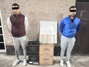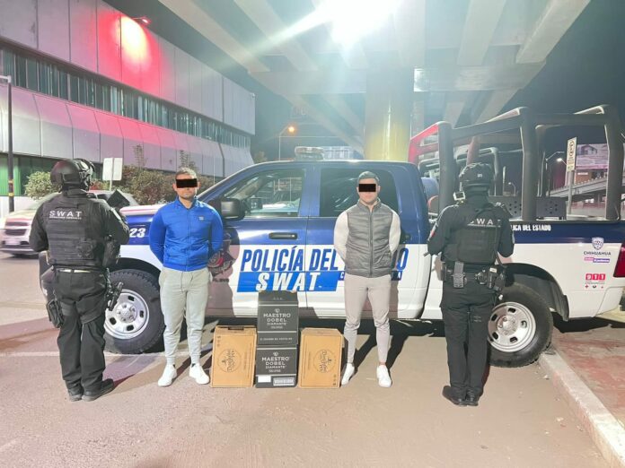 Elementos del Grupo Especial SWAT de la Secretaría de Seguridad Pública del Estado (SSPE), detuvieron en la ciudad de Chihuahua a dos sujetos que fueron sorprendidos transportando varias botellas de bebidas embriagantes similares a las encontradas en un laboratorio clandestino ubicado en la colonia Revolución.