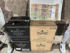A los sujetos se les aseguraron 4 cajas de cartón de dos marcas de tequila con 46 botellas de tequila (23 de una marca y 23 de otra).