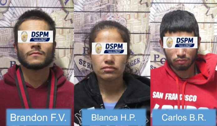 Los elementos de la corporación municipal aseguraron a Brandon F.V., de 23 años, Blanca H.P., de 30 años y Carlos B.R., de 21 años de edad, mismos que fueron presentados ante la Fiscalía General del Estado para integrar la carpeta de investigación correspondiente y dar seguimiento al caso.