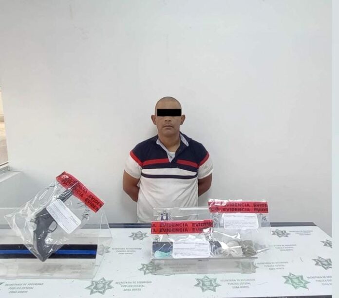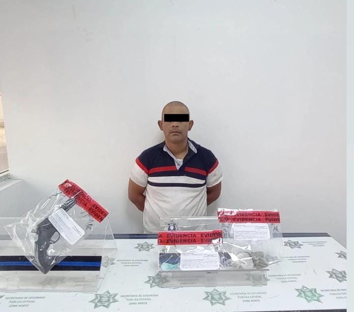 Luego de controlarlo, los elementos de la SSPE localizaron un arma de postas y los envoltorios de droga.