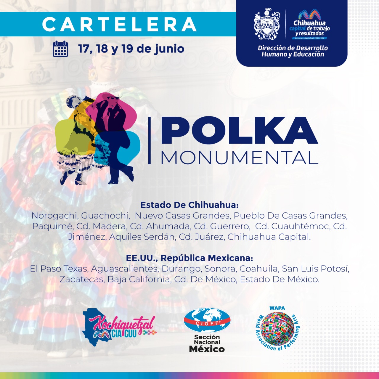 La Dirección de Desarrollo Humano y Educación, invita a las familias a asistir a los eventos gratuitos que se llevarán a cabo este fin de semana, del 17 al 19 de junio, en el evento Polka Monumental 2022.