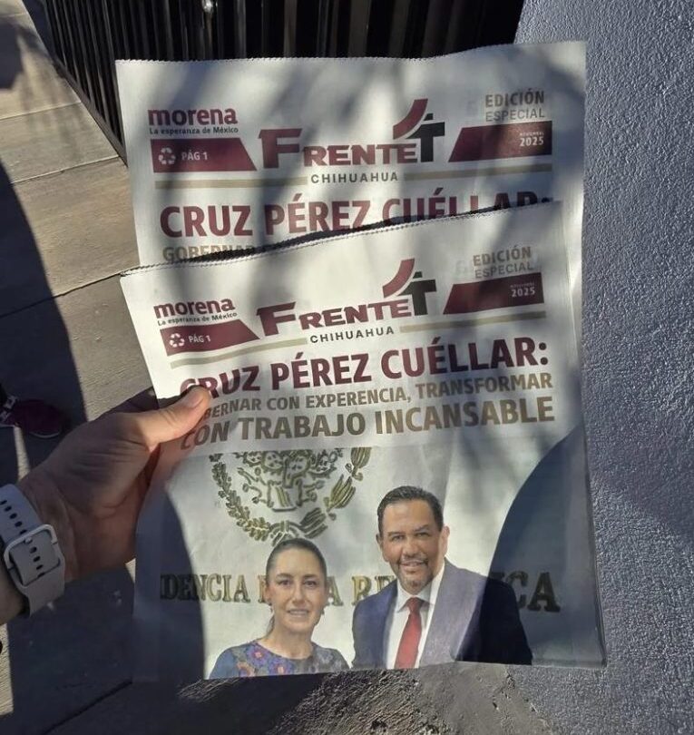 Un pasquín tabloide de varias páginas donde cada una lleva la palabra Cruz Pérez Cuéllar fue distribuido en días pasados casa por casa en la periferia de la ciudad de Chihuahua por brigadas que portaban el chaleco guinda del Frente 4T, ese que dirige ahora el diputado Miguel La Torre y que previamente dirigió el hermano incómodo Alejandro Pérez Cuéllar.