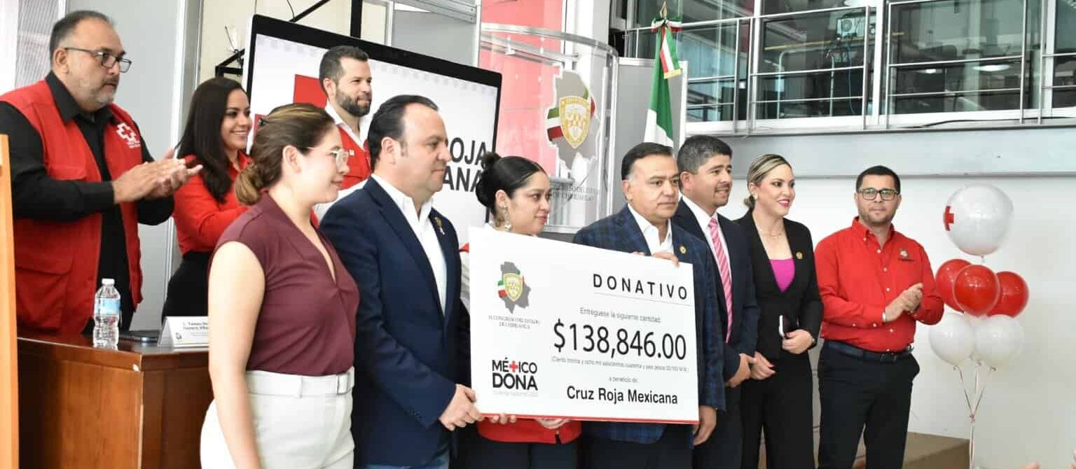 Dona Congreso casi 140 mil pesos a la Cruz Roja Mexicana
