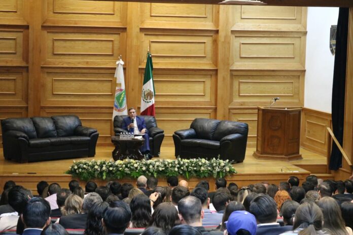 “Todo alumno o alumna que se inclina por ser estudiosos de las leyes tienen la suerte de poder vivir la revolución en materia de la aplicación en derecho, ya que en los últimos 20 años esta especialidad ha tenido una transformación fundamental de cómo aprendía y se aplicaba” expresó el Dr. Javier Láynez Potisek, Ministro de la Suprema Corte de Justicia de la Nación, quien impartió la conferencia en el auditorio “Rodolfo Cruz Miramontes” de la Facultad de Derecho de la UACH.
