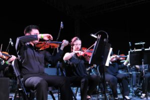 Por primera vez en dos años, la OSUACH tocó completa, bajo la dirección del maestro Raúl García en colaboración con el ICM para clausurar la reapertura del ciclo de cine de El Rejón que promueve la Esquina Benjamín Franklin.