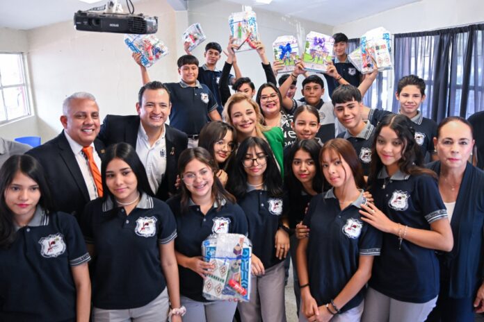 El acto se desarrolló en la escuela Secundaria Federal No. 7 “José Fuentes Mares”, de la capital del estado, donde además inició la entrega de kits escolares a niñas, niños y adolescentes de diversos planteles, con una inversión de 52 millones de pesos, en conjunto con el Sindicato Nacional de Trabajadores de la Educación (SNTE).