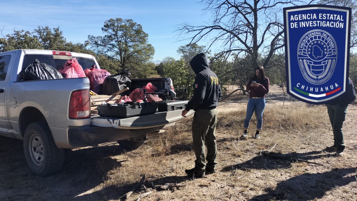 Con el uso de aparatos tecnológicos como drones se efectuó la inspección de amplias superficies en las cuales se detectaron evidencias y fragmentos óseos.