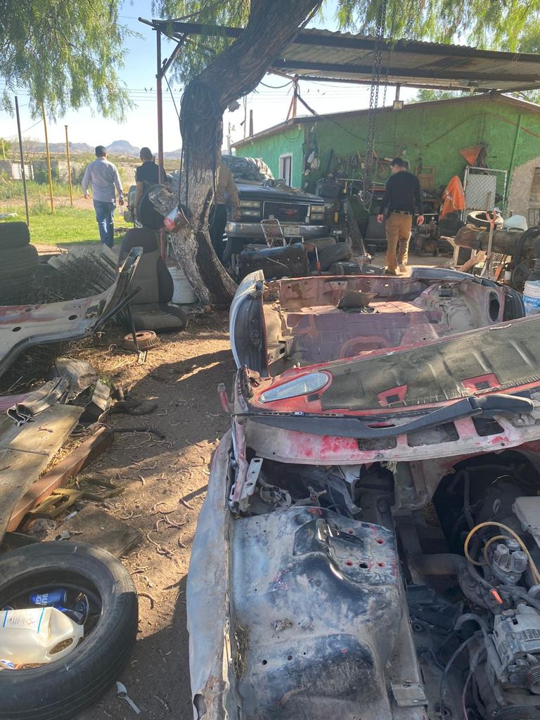 Durante la intervención a cargo del Ministerio Público y elementos de la Agencia Estatal de Investigación (AEI), localizaron autopartes de un vehículo de la marca Chevrolet, Camaro, modelo 1995, color blanco, con reporte de robo interpuesto el 18 de julio de 2023.