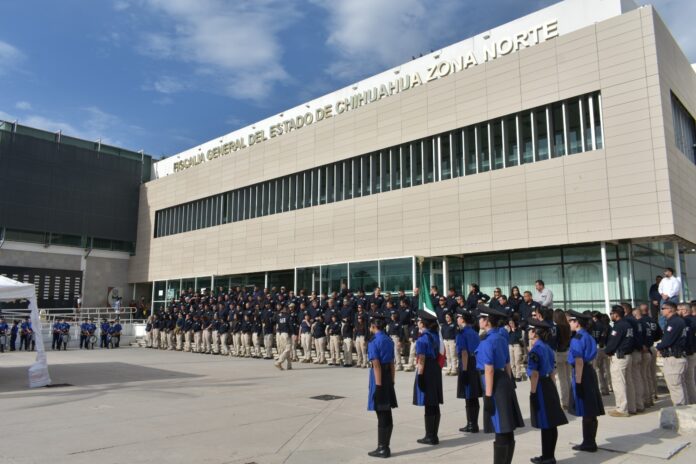 Actividad promovida por la Agencia Estatal de Investigación (AEI), a través del Grupo de Orientación Escolar Chihuahuense (GOECHI), dentro del programa de “Fortalecimiento Cívico Institucional”, en el que mensualmente se reconoce el trabajo y esfuerzo de instituciones gubernamentales y planteles educativos, con la participación de escoltas y Bandas de Guerra.