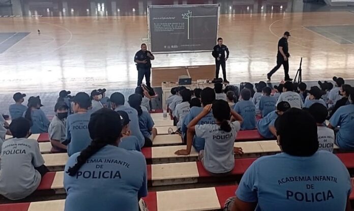 Niñas, niños y adolescentes pertenecientes a la Academia Infantil de Policía de Ciudad Camargo, recibieron la visita de integrantes de la Policía Cibernética de Chihuahua Capital, a fin de instruirlos y fomentar en ellos la cultura de la prevención sobre delitos que se cometen en la web y que sepan cómo actuar ante una situación de este tipo para evitar convertirse en víctimas de estos delincuentes virtuales.