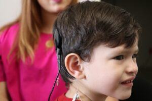 En un momento emotivo, niños de 7 y 4 años de edad beneficiarios con implantes cocleares escucharon por primera vez la voz de sus madres, en virtud del trabajo de la directora del Hospital Infantil, Sandra Iveth Caraveo Olivos y a la asistente, Ana Cynthia Avitia López, junto con el equipo del CREE.