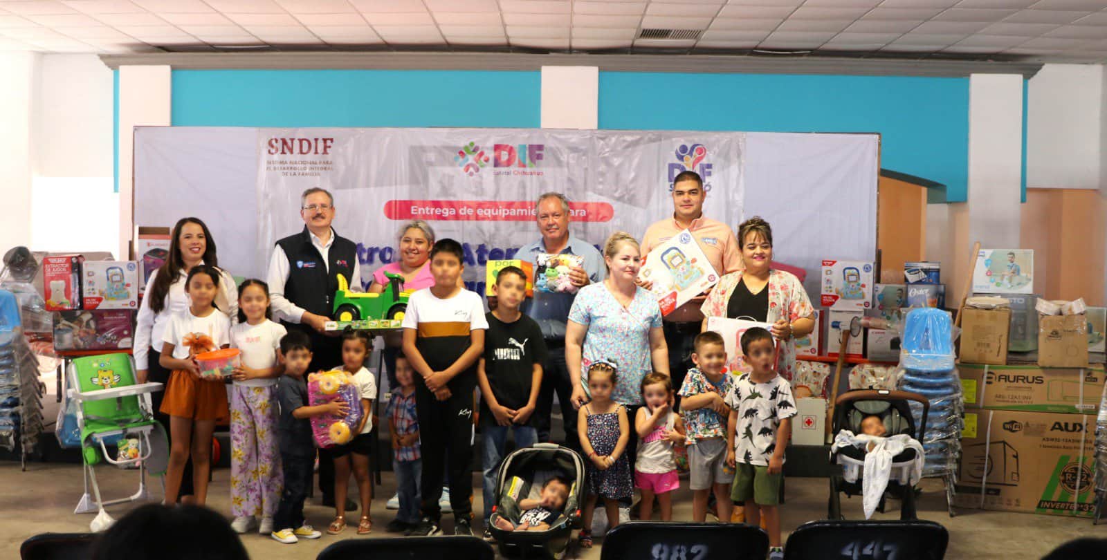 El DIF Estatal entregó mobiliario y equipamiento en los Centros de Atención Infantil (CAI), de San José del Sitio y de la cabecera municipal de Satevó, con el objetivo de garantizar el cuidado y atención de las niñas y niños que ahí son atendidos.