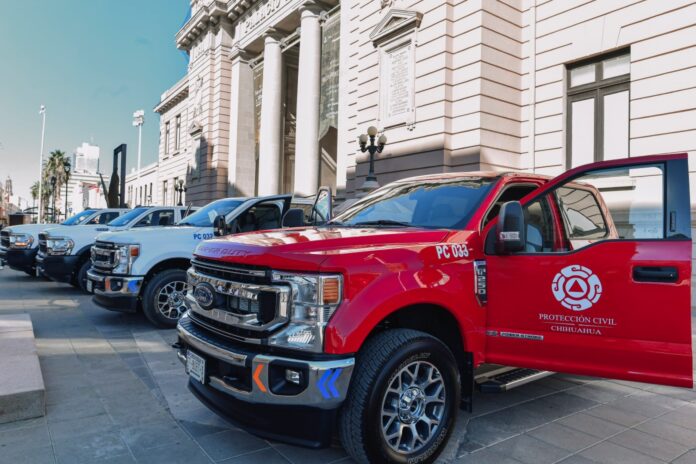 La Gobernadora Maru Campos Galván entregó cinco unidades nuevas todo terreno a la Coordinación Estatal de Protección Civil (CEPC), para acompañar y fortalecer el trabajo que realiza el personal de la dependencia, particularmente en estos momentos en que más se necesita.