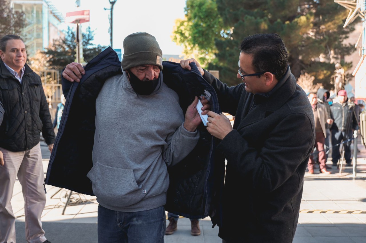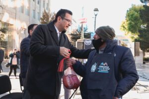 Con motivo de la Navidad, el alcalde Marco Bonilla hizo entrega la mañana de este miércoles 14 de diciembre, de piernas de cerdo para la cena de noche buena, chamarras y mandiles a los 65 boleros que diariamente lustran el calzado a los visitantes del Centro Histórico.