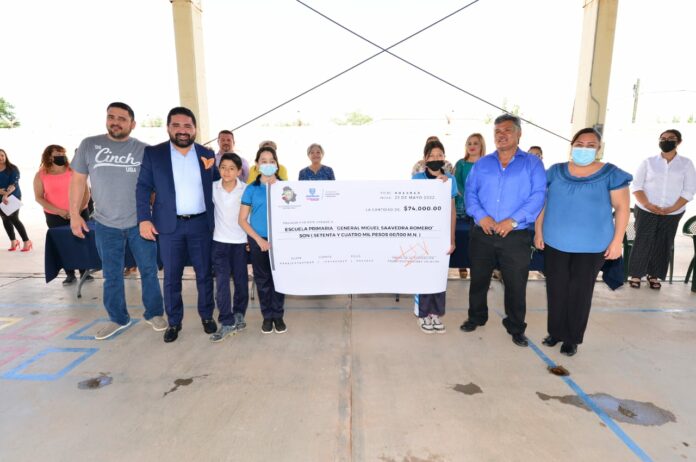 Con este recurso, que se entrega como premio por la participación del alumno Iván Uriel Chávez, quien representó a la bancada de Movimiento Ciudadano en el Congreso Infantil, se invertirá en la mejora de la infraestructura para optimizar las aulas y espacios de enseñanza donde se forman cientos de niños aldamenses.