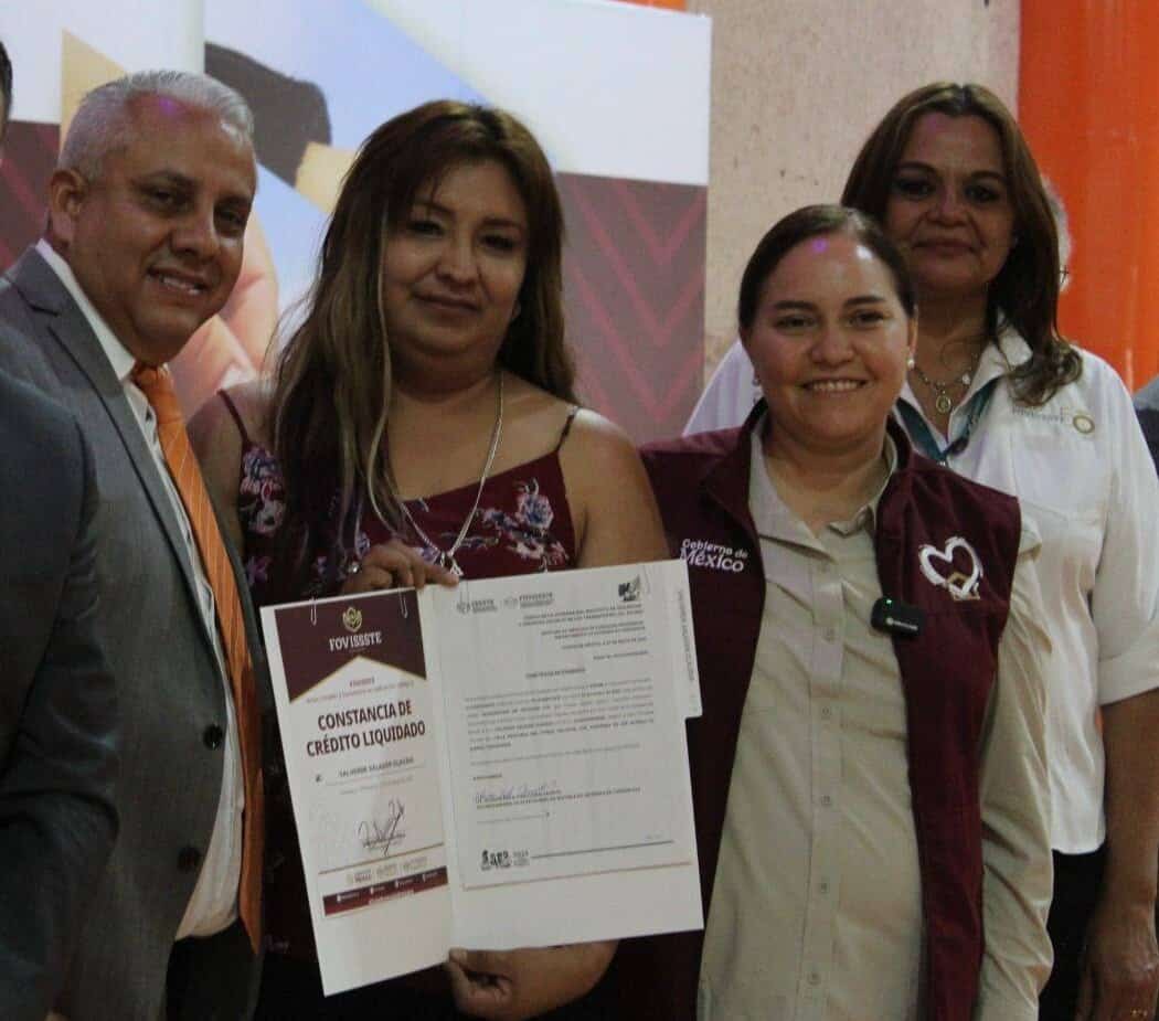 El Fondo de la Vivienda del ISSSTE y la Sección 8a. del SNTE entregaron 55 escrituras administrativas, 99 escrituras con cancelación de hipoteca, 271 constancias de liquidación de crédito, así como 10 escrituras públicas.