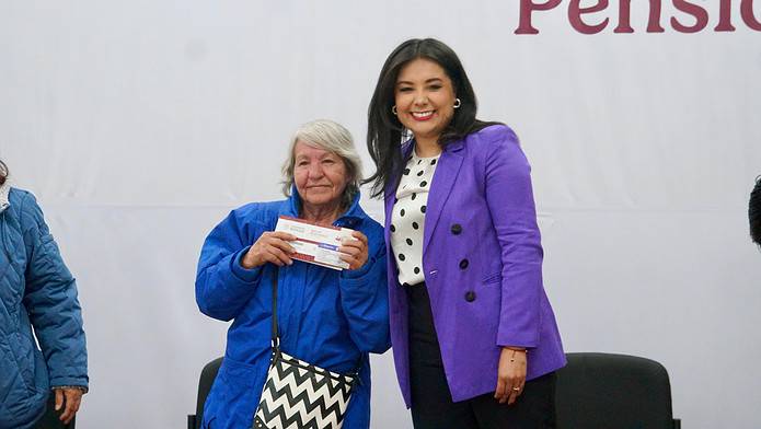 La delegada de Programas para el Bienestar en el estado de Chihuahua, Mayra Chávez Jiménez, entregó las primeras 8 mil 709 tarjetas de la Pensión Mujeres Bienestar en la frontera.