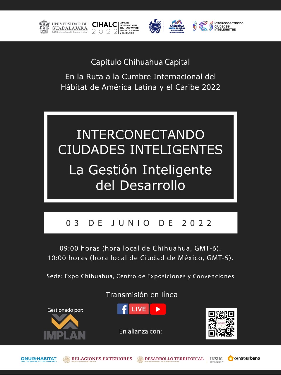 El programa completo del Foro se encuentra disponible en: https://implanchihuahua.org/IMPLAN-Datos/pdf/Programa.pdf , y el registro para asistir a este evento gratuito, se puede realizar en la siguiente liga: https://www.eventbrite.com/e/interconectando-ciudades-inteligentes-gestion-inteligente-del-desarrollo-tickets-348930990987.