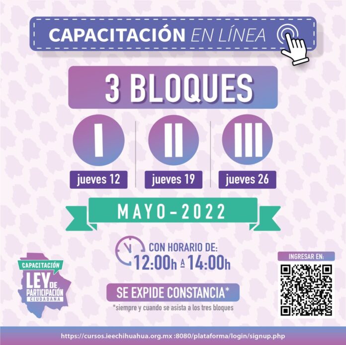 La capacitación se está brindando a distancia, con inscripción previa a través del llenado del siguiente formato, ingresando a: https://cursos.ieechihuahua.org.mx:8080/plataforma/