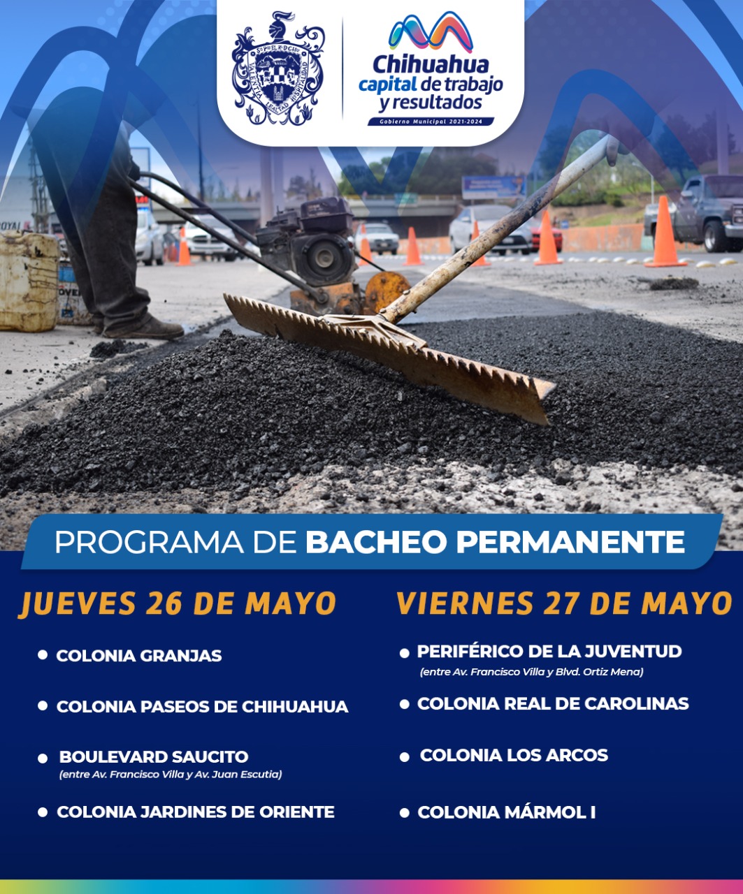 Estas son las calles y zonas de atender con bacheo este jueves y viernes