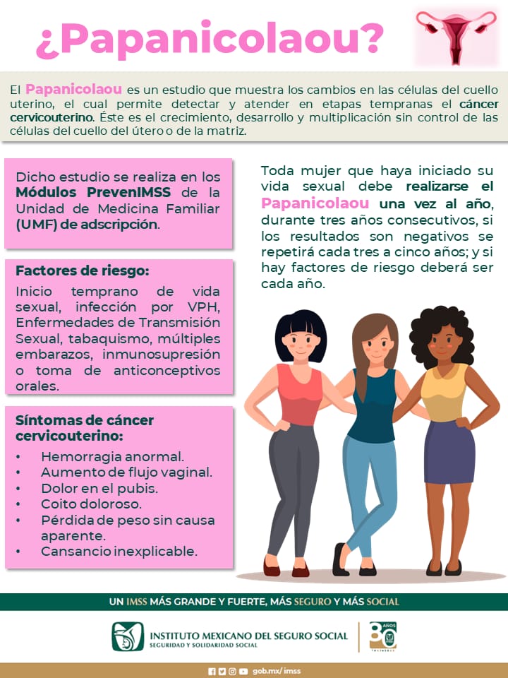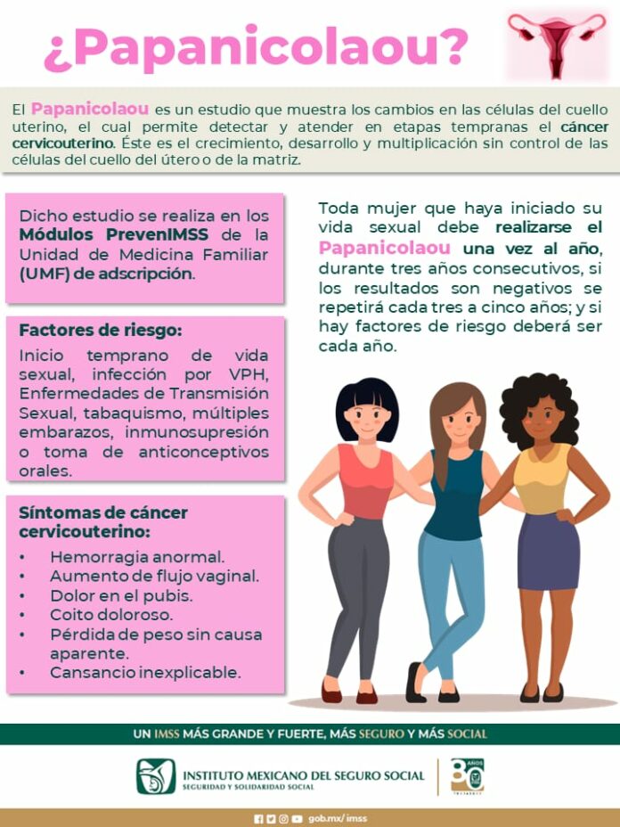 El Instituto Mexicano del Seguro Social (IMSS) en Chihuahua, a través de la Jefatura de Servicios Médicos, exhorta a las derechohabientes a realizarse el estudio del Papanicolaou, que permite detectar y atender en etapas tempranas el cáncer cervicouterino.
