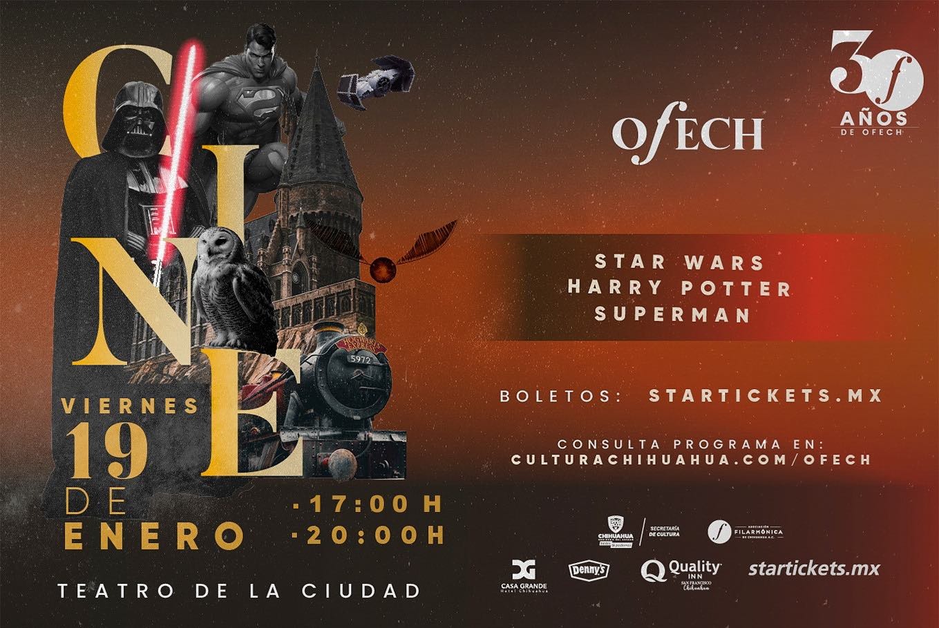En el marco de la conmemoración de su 30 Aniversario, la Orquesta Filarmónica del Estado de Chihuahua (OFECh) se presentará con el concierto “Música de Cine”, que se realizará este viernes 19 de enero en el Teatro de la Ciudad.