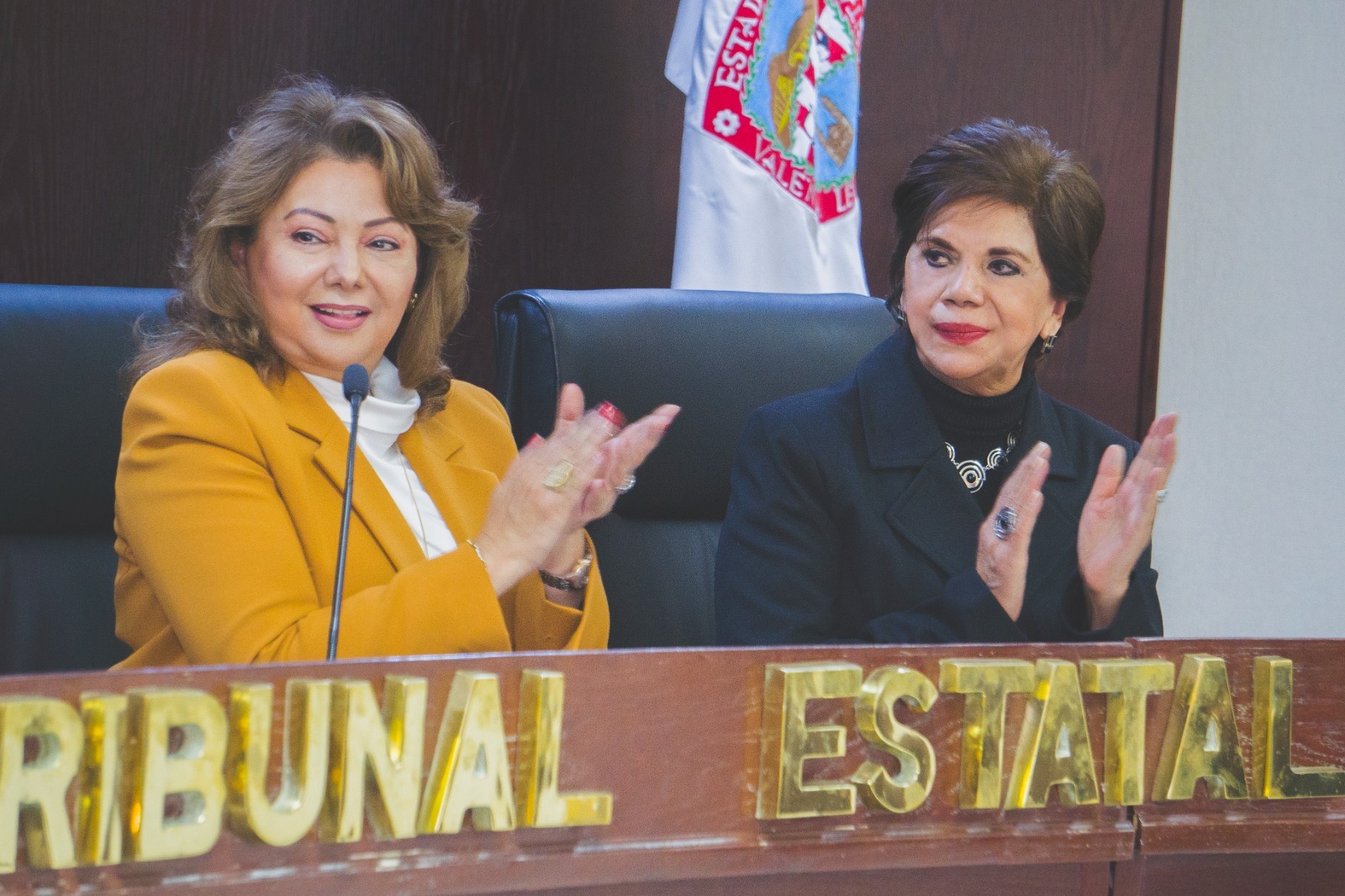 La ceremonia contó con la participación de la secretaria de la Función Pública, María de los Ángeles Álvarez Hurtado, y la magistrada Socorro Roxana García Moreno, presidenta del Tribunal Estatal Electoral, así como de otros miembros del presídium y servidores públicos de ambas instancias.