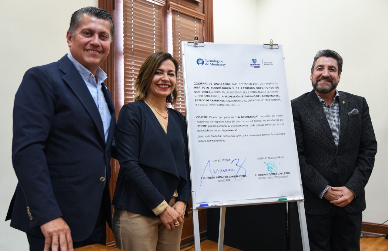 La Secretaría de Turismo firmó un Convenio de Vinculación con el Instituto Tecnológico y de Estudios Superiores de Monterrey (Itesm) Campus Chihuahua, en el cual la dependencia estatal fungirá como “socio formador” al brindar a los estudiantes proyectos de índole académico y espacios fuera del Campus, donde combinen sus conocimientos con la práctica en campo, a fin de potenciar su desarrollo profesional.