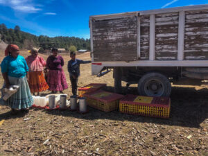En conjunto con el equipo de la Presidencia Municipal de Bocoyna, se realizó la entrega de herramientas de uso agrícola, materiales y semillas para huertos hortícolas, equipo de aperos de labranza y guarniciones, insumos para elaboración de composta, materiales para corrales avícolas y pollas y gallos.