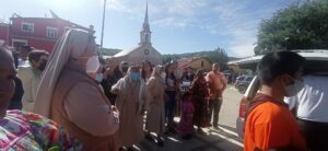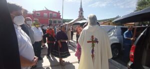 Con un pascol,, la comunidad de San Rafael, cabecera municipal de Urique, acompañó el camino a sus sacerdotes jesuitas, Javier Campos y Joaquín Mora. El encargado de las misiones jesuitas, Jorge Atilano, agradeció a la gente el cariño hacíamos sacerdotes y les dió la bendición. Más adelante, decenas de personas hacen una valla con globos para decirles adiós.