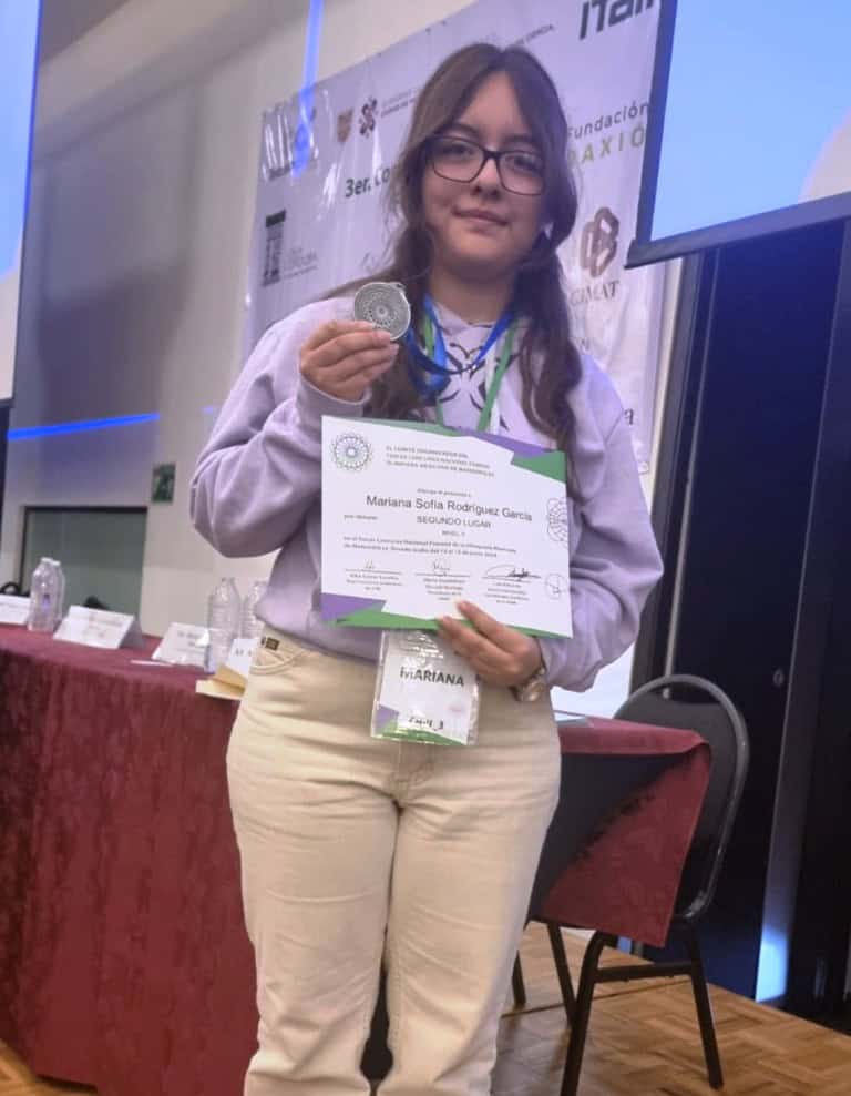 La joven Mariana Sofía Rodríguez García, alumna del Colegio de Bachilleres del Estado de Chihuahua (Cobach), plantel 22 en Ojinaga, obtuvo la medalla de plata en la 37ª olimpiada nacional de matemáticas femenil, en el nivel II (juvenil mayor).