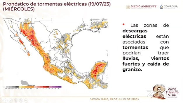 De igual forma se prevén precipitaciones aisladas de 0,1 a 2 (mm) en los municipios de Madera, Temósachic, Guerrero, Bocoyna, Guachochi y Balleza. Cabe señalar que estas condiciones pueden estar acompañadas de actividad eléctrica y eventual caída de granizo.