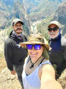 Imagínense pasar la noche a la orilla de este río (ver el vídeo), escuchando ese relajante sonido. Se levanta uno con nuevos bríos, con ánimos para hacer cualquier cosa, no obstante la edad que tengas y haber dormido en el suelo, dentro de una pequeña tienda de campaña. Eso hicimos el fin de semana de 7 y 8 de mayo un grupo de 14 loquillas y loquillos amantes de la naturaleza, vadeando (y cruzando) durante varios kilómetros el río Urique en lo más profundo de la barranca del mismo nombre en la Sierra Tarahumara, hasta llegar al punto conocido como Doble Herradura. Una maravilla natural. Un paraíso en la tierra…