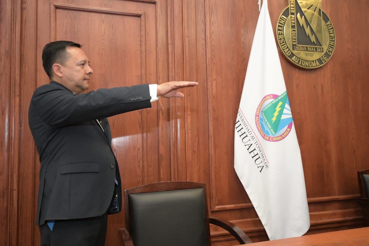 El rector de la Universidad Autónoma de Chihuahua, maestro Luis Alfonso Rivera Campos, encabezó el nombramiento oficial del C.P. Jesús Ignacio Rodríguez Bejarano como titular de la Secretaría General de nuestra Alma Mater.