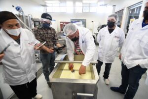 En este curso-taller que fue de manera presencial, pero respetando el cupo estipulado por el sector salud, cada participante aprendió sobre técnicas, procedimientos y metodologías para aumentar la calidad en la producción de quesos frescos con leche en polvo descremada y grasa butírica.
