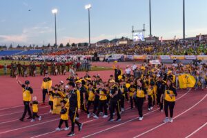 En la ceremonia, la mandataria estatal dio la bienvenida a los más de 6 mil atletas provenientes de diferentes partes de México, y de países como El Salvador y Guatemala, así como a los familiares, amigos y autoridades académicas que los acompañan al certamen, que congregará a un aproximado de 30 mil visitantes en la ciudad de Chihuahua.