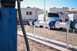 Como parte de la gira de trabajo que la gobernadora Maru Campos realizó por Ciudad Juárez, inauguró en el fraccionamiento Valle del Sol el tanque superficial “Tres Cantos” y puso en funcionamiento el pozo 25, con una inversión superior a los 53 millones de pesos que beneficiará a 30 mil habitantes del sector.