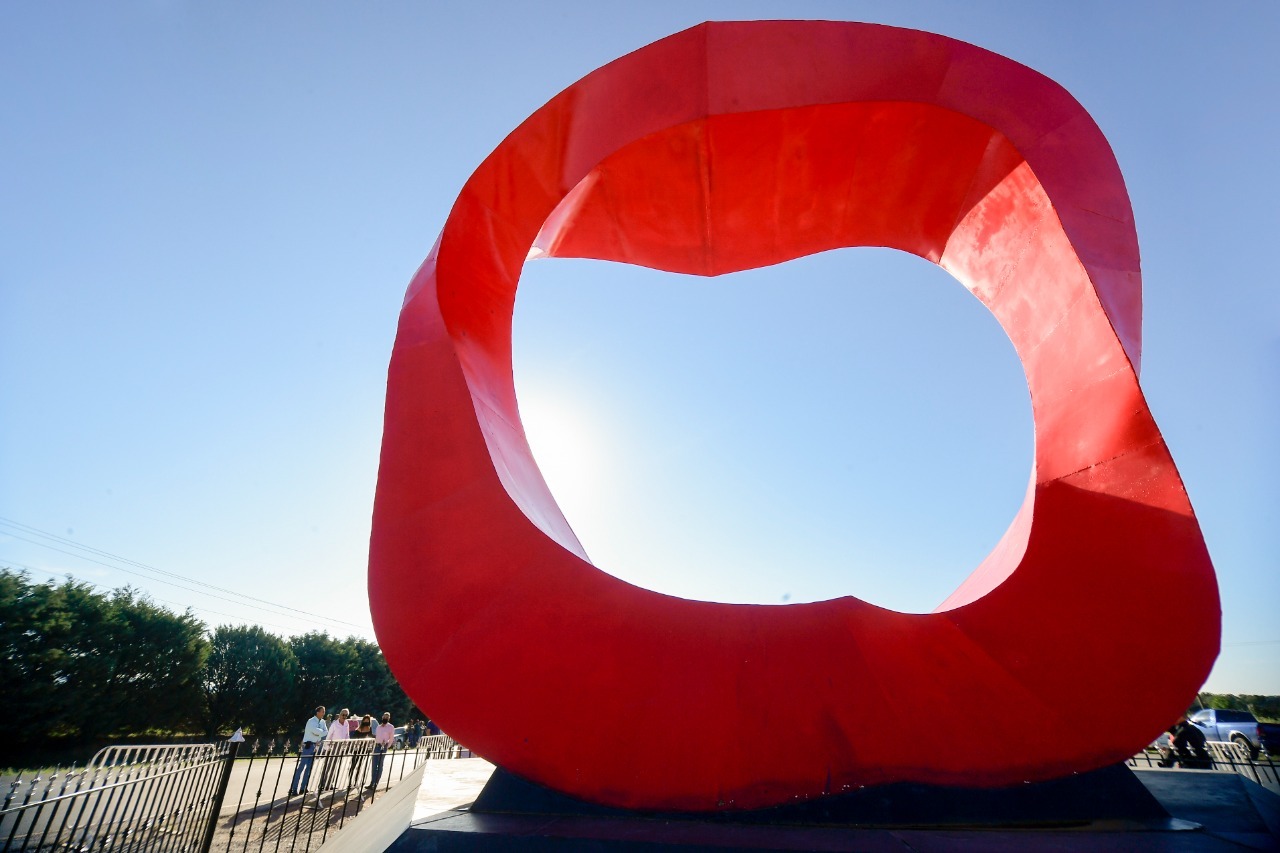 Dijo que eligió ese nombre porque “cuando tú te comes la manzana, la forma que te queda es de un corazón y así se aprecia la escultura de norte a sur, se ve esa forma del corazón de la manzana, que es el producto que ha mantenido toda esta región tan bella”.
