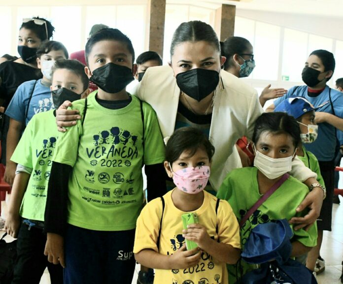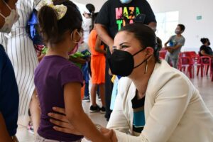 Geo Bujanda, diputada por el Distrito 12 inauguró la Veraneada 2022 que organiza el Centro Comunitario San Martín con el apoyo de la Fundación 1,2,3 de FECHAC dirigido a niñas, niños y adolescentes.