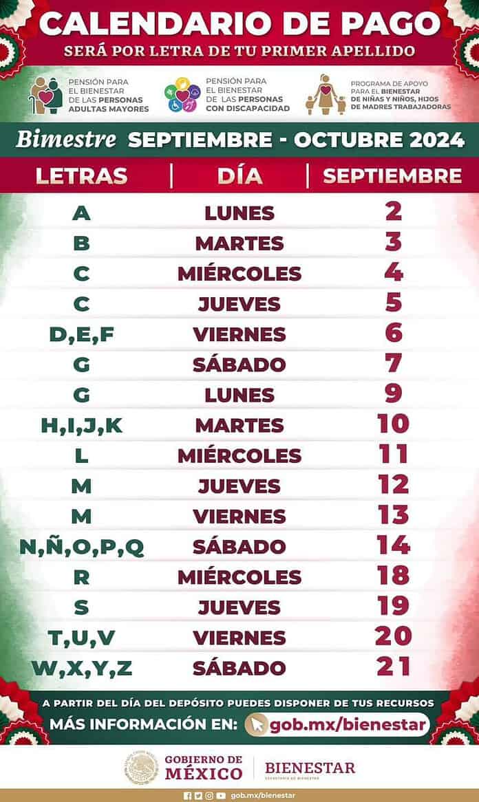 La secretaria de Bienestar, Ariadna Montiel Reyes, informó que a partir del 2 de septiembre inicia la dispersión de recursos de manera directa a derechohabientes y beneficiarios de la Pensión para el Bienestar de las Personas Adultas Mayores, Pensión para el Bienestar de las Personas con Discapacidad; y Programa de Apoyo