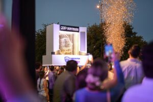 Como parte del evento, la titular del Ejecutivo encendió el reloj conmemorativo en la Plaza del Ángel, mismo que marcará la cuenta regresiva de 366 días rumbo a la celebración.