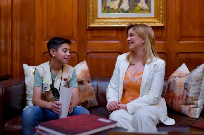 En el marco de los festejos por el Día del Niño, la Gobernadora Maru Campos recibió en su despacho de Palacio de Gobierno al reportero infantil de El Heraldo de Chihuahua, Oliver Márquez, quien le realizó una entrevista en la que se tocaron diversos temas.