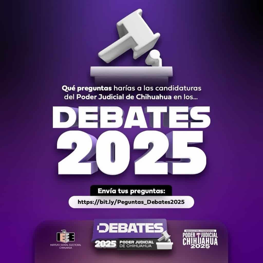 El Instituto Estatal Electoral de Chihuahua convoca a la ciudadanía a formar parte de los Debates 2025 enviando preguntas para las candidaturas a magistraturas, juezas y jueces del Poder Judicial del Estado de Chihuahua.