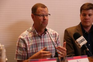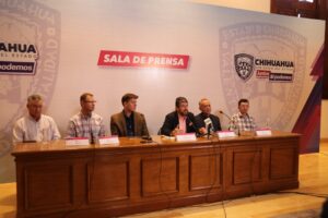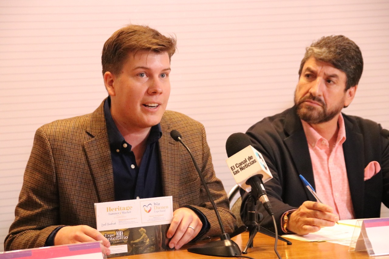 En la rueda de prensa, estuvieron presentes Abraham Schmitt y Kevin Dyck, miembros del Comité del 100 Aniversario de la llegada de los menonitas a Chihuahua.