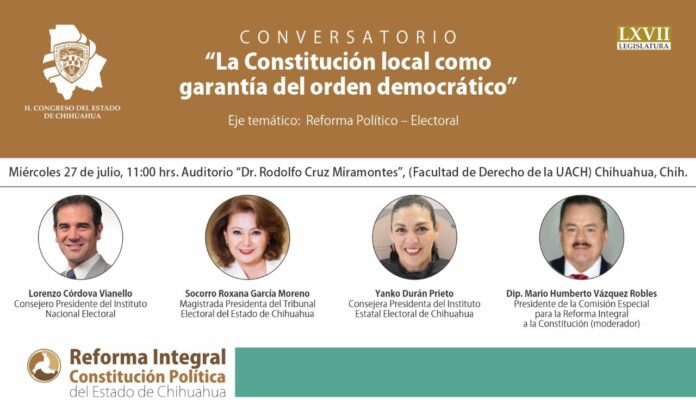 Además, participarán la Magistrada Presidenta del Tribunal Estatal Electoral de Chihuahua, Socorro Roxana García Moreno y la Consejera Presidenta del Instituto Electoral de Chihuahua, Yanko Durán Prieto; el diputado Mario Humberto Vázquez Robles, presidente de la Comisión Especial para la Reforma Integral de la Constitución Política, será el moderador del evento.