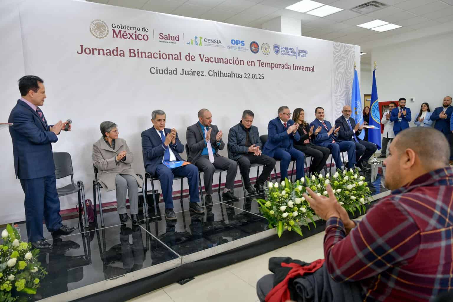 El arranque oficial contó con la participación de autoridades de los gobiernos de ambos países, así como de equipos técnicos del sector salud del Distrito de Juárez, en el marco de la Campaña de Vacunación Temporada Invernal 2024-2025.