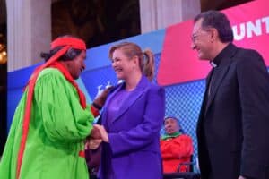 Al evento asistieron además el Nuncio Apostólico en México, Monseñor Joseph Spiteri; la presidenta del DIF Estatal, María Eugenia Galván; el secretario de Pueblos y Comunidades Indígenas, Enrique Rascón y el alcalde de Guachochi, Alejandro Hernández.