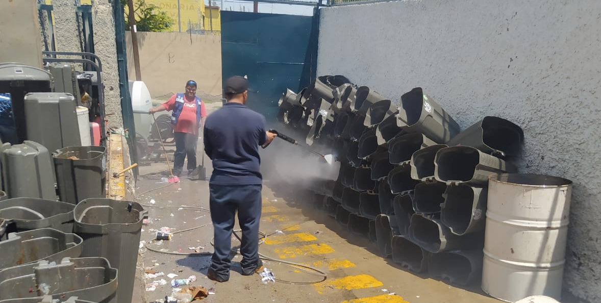 Los cepos de basura que se encuentran a lo largo del primer cuadro de la ciudad se retiran y se llevan a unas de las instalaciones de la dependencia, en donde se les aplica agua y jabón a presión.