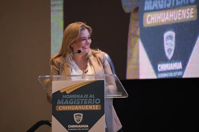 Al encabezar la ceremonia de reconocimiento a cerca de 400 docentes adheridos a la Sección 42, del Sindicato Nacional de Trabajadores de la Educación (SNTE), la Gobernadora del Estado los exhortó a proteger a la sociedad y a la niñez chihuahuense.